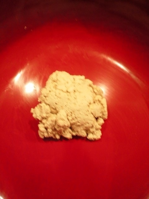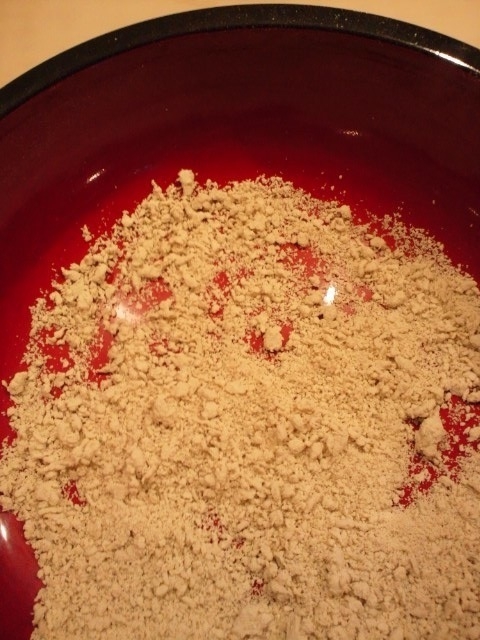 160g蕎麦、40gつなぎ粉。水は50%のため、100g。あ、こね鉢は、年末のホームセンターに売っている、おもち用のプラスチックに漆が塗ってあるのでOK。 |