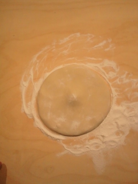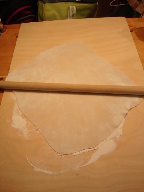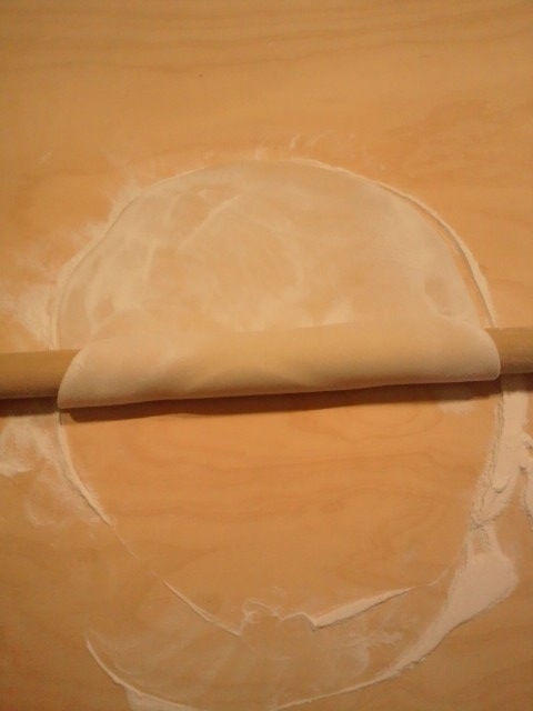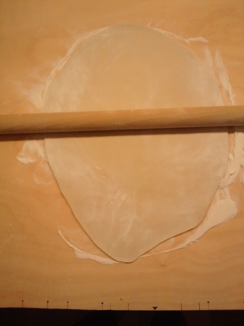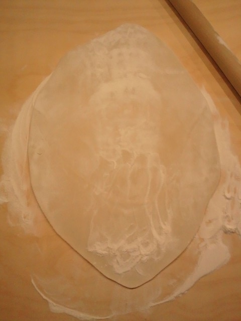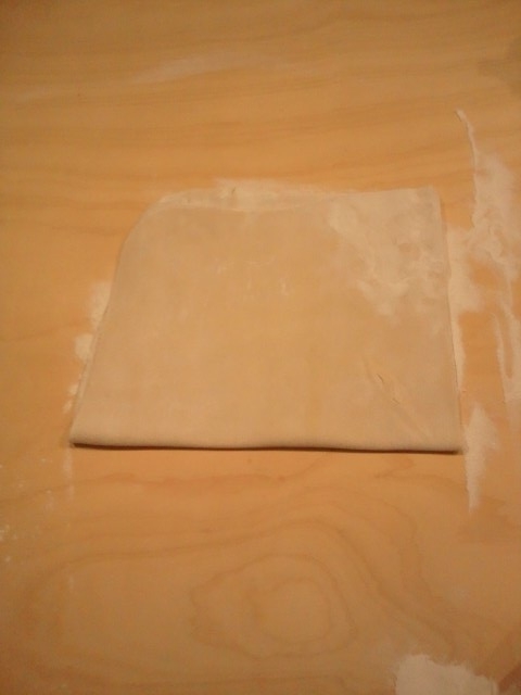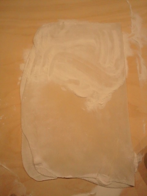 四角くなりました。気に入るまで薄くのばします。 |