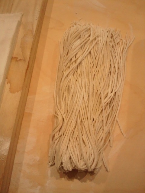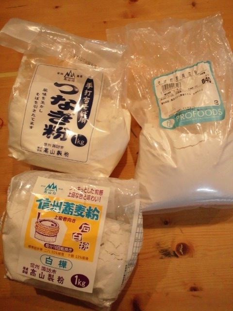 材料はこれ。高山製粉 白樺 を使用。二八そばです。高山製粉は、注文後にそばを引いて発送するので、中一日かかりますが、とにかく新鮮で、そば打ち自体の失敗がなくなりました。白樺は1kg1680円。打ち粉のセットも有ったりします。 |
