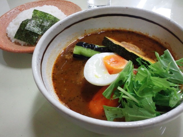 カレー曜日 2011年9月20日 by momolab Leave a Comment 三越の、北海道物産展にて、スープカレーのイートイン。スペシャルカレーと野菜チキンカレー。見てたら、濃いスープを薄いスープで割ってたみたいなかんじ?ラーメンのタレとスープみたいなかんじかな?野菜や鶏肉は別に加熱してあるみたい。お肉はほろほろと崩れます。日曜はカレーだね! 共有:Facebook続きGoogleメールアドレス印刷 関連