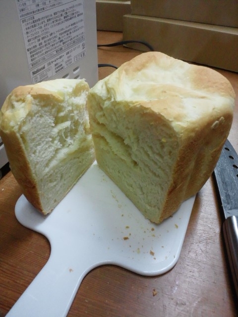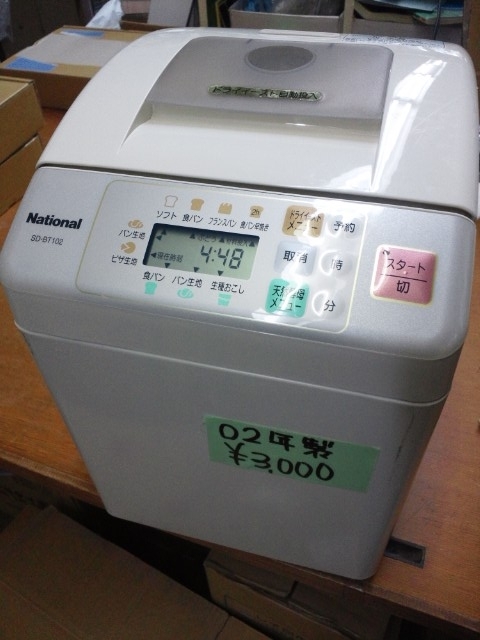 今回は、パナソニックの1斤用SD-BT102。10年前のきれいなのが、中古で3000円。実験用に、天然酵母も使用できるタイプを探していたのです。(中古屋には、別のエムケーの天然酵母コース無しが3000円でありました)パナソニックのホームベーカリーはちょっと特殊で、イースト菌を使用する場合、ねりの途中で2回に分けて自動でイーストを投入します。このほうがしっとりするみたい。そのわりに、焼き上がりがちょっと強め、なので、好みが分かれるみたい。