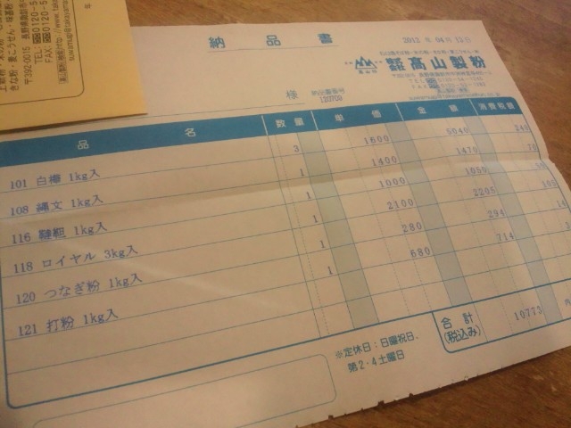そば粉が少なくなったので、注文しました。いつもの高山製粉