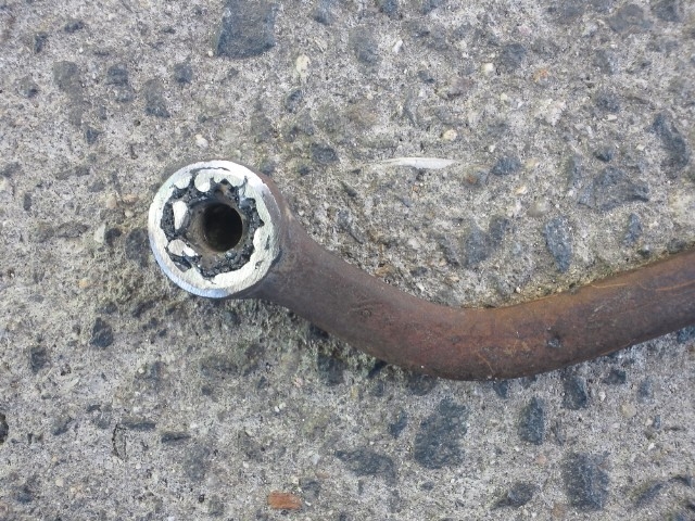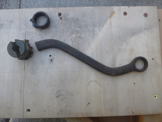 と、言いつつも、メガネレンチが丁度良さそうな形です。サンダーで片方を切除。