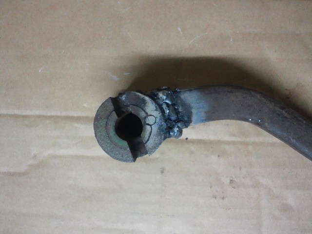 反対側の穴は、ちょうど良いボルトを入れたまんま溶接して固定。これで、ねじ切りしなくてもねじが出来ました。