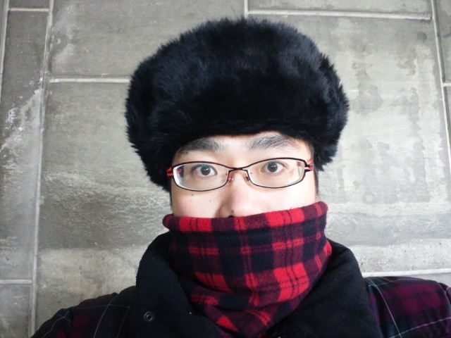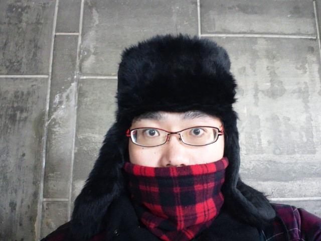 耳あて付きのロシアの帽子、ウシャンカといいます。shapka-ushanka(шaпкa-ушанка)朝4時30分出発のももは、耳が寒いので、ウシャンカを作りました。