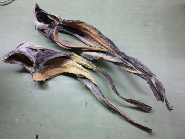 棒だら2腹仕入れました。北海道でとれたタラを、塩を使わずにがんがんに干しあげて、昆布と一緒に北前船で日本海南下、瀬戸内海横断して、大阪や京都に届けられていた乾物です。水で戻すのに1週間かかる、大変な食材。最近は水戻ししてたり味付け済みのが売ってます。末端で、半身で3割り増し、ぶつ切りでさらに5割り増し、水戻しでさらに倍かな?小分けにするほど加工するほど値段が上がるわけですが、需要が減ってきてるだろうし、製造会社も大変ですねぇ。