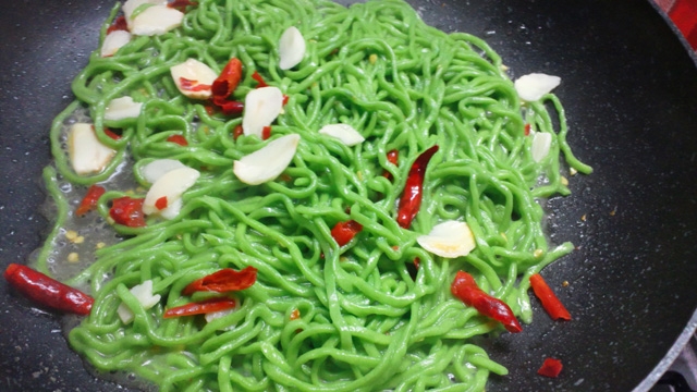 ほうれんそうのタリアテッレ ペペロンチーノ