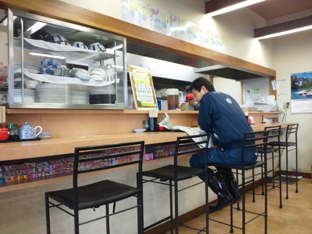 店内はテーブル3席とカウンター。シンプルに定食屋っぽく。