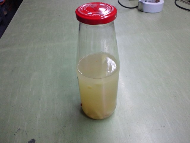 微発泡です。ショウガの砂糖漬けを入れてみたので、ジンジャーエールみたい。